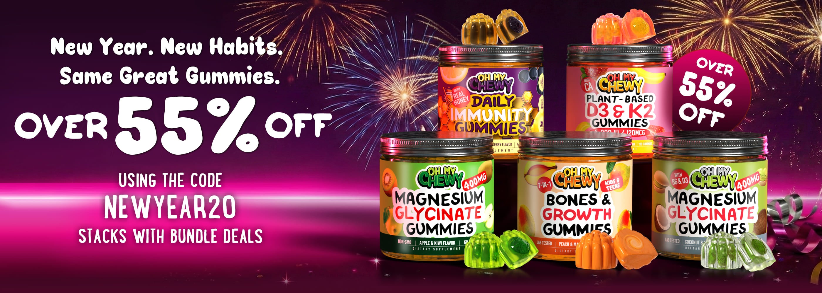 Oh My Chewy is unique because it combines delicious flavor, clean ingredients, and real functionality in every gummy - making health easier (and tastier) for the whole family.